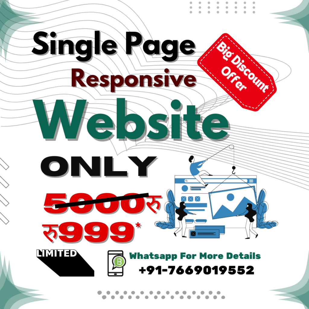 "We’re offering a fully responsive, mobile-friendly single-page website for just ₹999! Perfect for startups, small businesses, and personal brands – includes fast delivery, custom design, and a professional look to kickstart your online presence."*